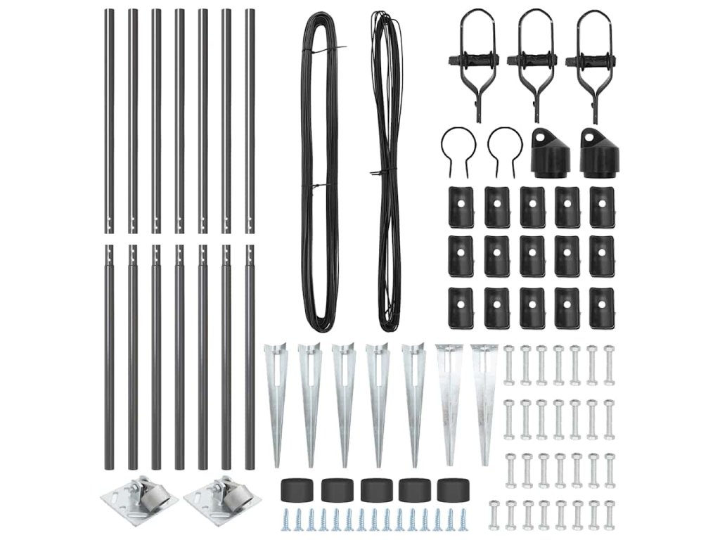 - Zahŕňané komponenty: Tento systém sa jednoducho montuje. Na inštaláciu stačí kladivo a máte hotovo. Skvelé sa hodí ku bránam a oploteniam, poskytuje stabilitu a funkčnosť v rôznych vonkajších prostrediach.