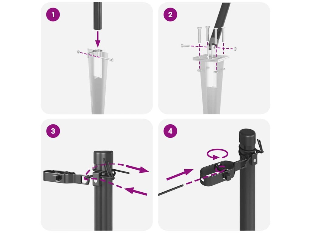 - Materiály: Stĺpik je z pozinkovanej ocele s práškovým nástrekom, čo zabezpečuje jeho odolnosť. S týmto materiálom vydrží aj v najnáročnejších podmienkach a poskytuje pevnú oporu. Hladký povrch navyše zabezpečuje štýlový vzhľad a bráni opotrebovaniu.