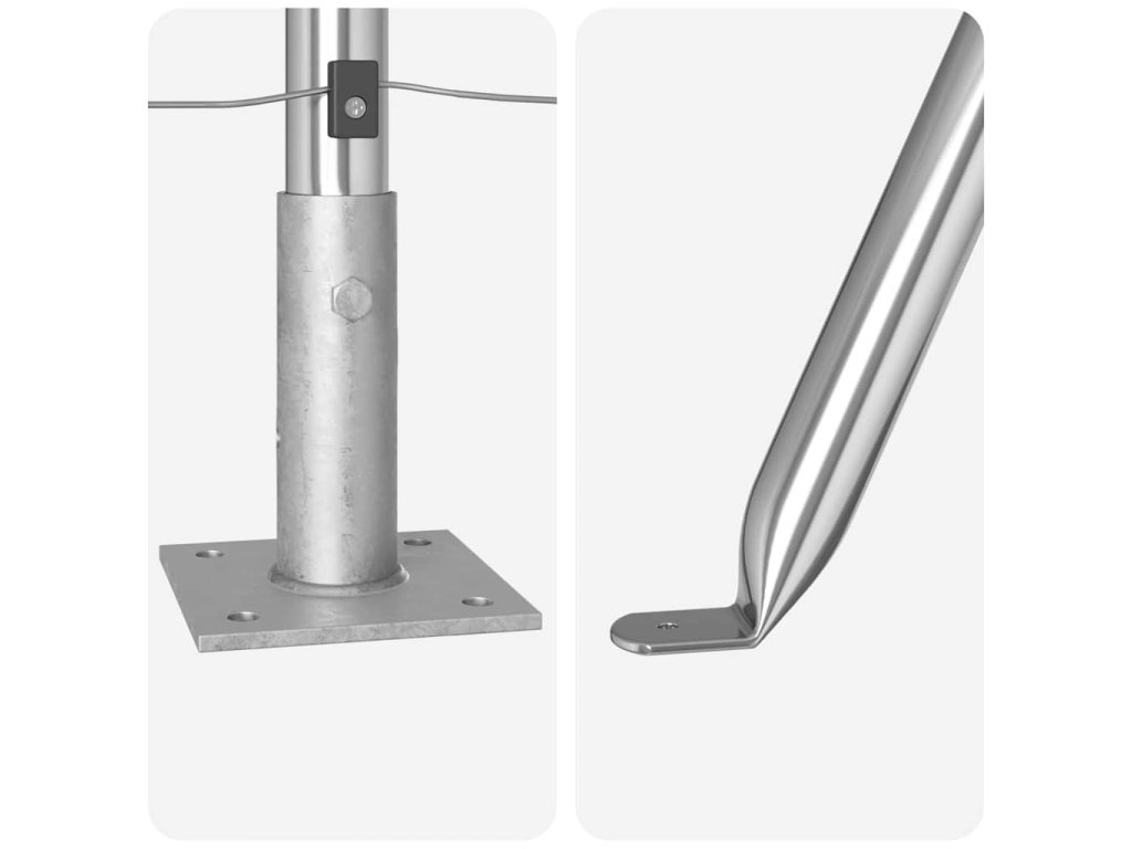 - Pevné materiálové zloženie: Vyrobený z robustnej ocele, tento stĺp vydrží aj tie najnáročnejšie podmienky. Oceľ odoláva opotrebovaniu a zachováva si pekný vzhľad aj pri zlých poveternostných podmienkach.