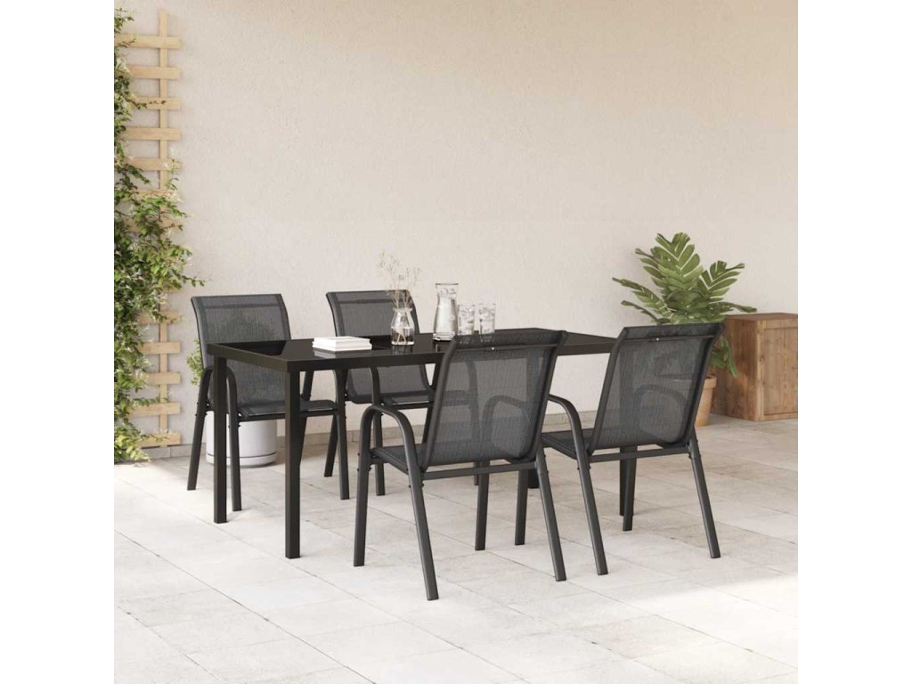 Multidom Stohovateľné záhradné stoličky 4 ks čierne textilénová látka