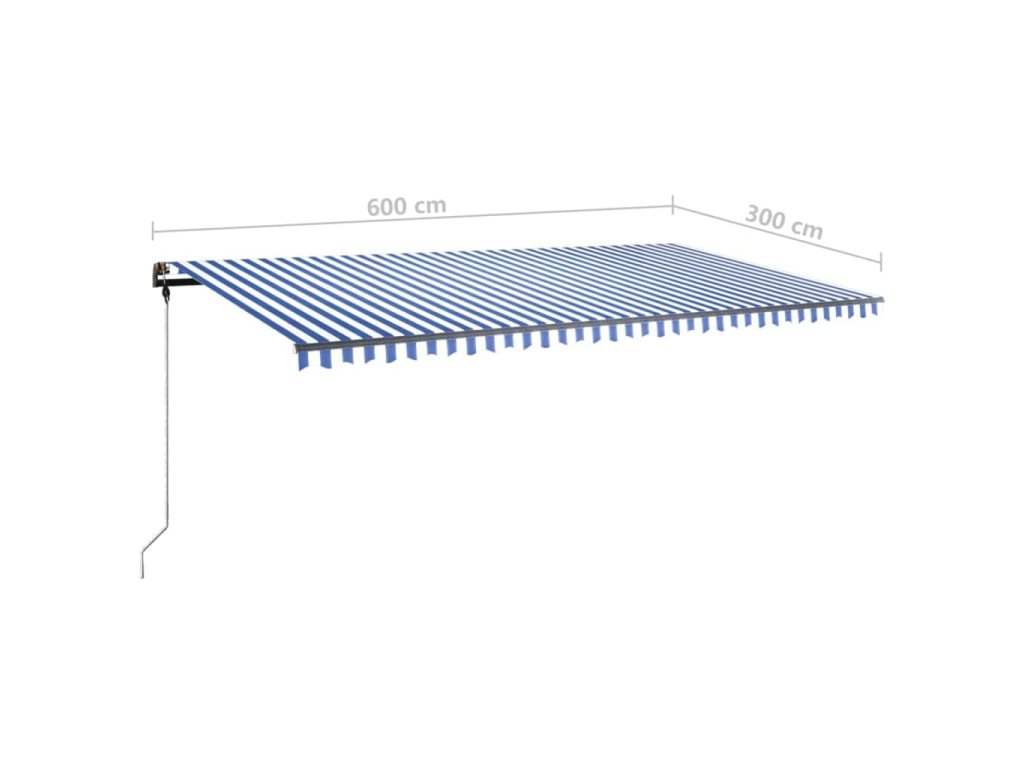 Multidom Stojaca ručne zaťahovacia markíza 600x300 cm modro-biela