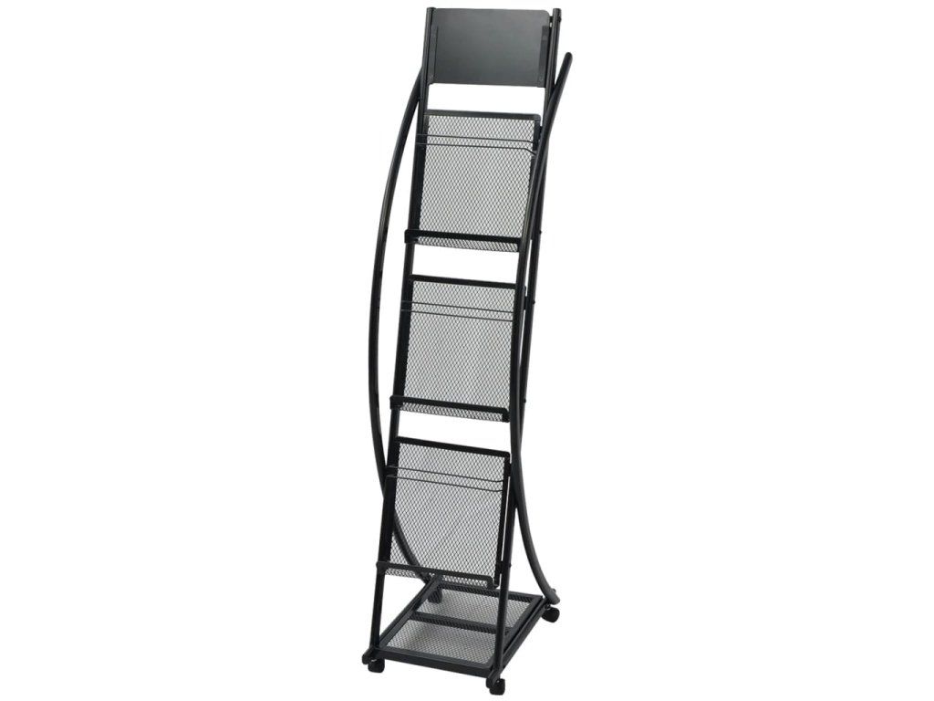 Tri veľké priehradky ponúkajú dostatok priestoru na vystavenie A4 brožúr, kníh alebo časopisov vedľa seba. Môžete si vytlačiť alebo prilepiť logo vašej firmy na vrchnú dosku. Vďaka kolieskam sa ľahko presúva a má moderný dizajn, ktorý sa hodí do takmer akéhokoľvek interiéru. Stojan môžete umiestniť do kancelárie, čakárne, obývacej izby alebo spálne.