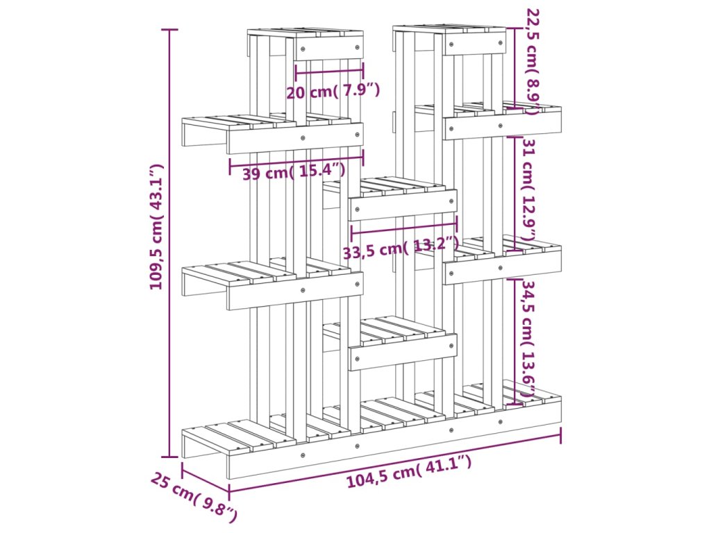 - Jedinečný dizajn: Jedinečný dizajn police na rastliny krásne ukáže vaše kvety a pomôže rastlinám získať viac slnečného svetla a lepšie rásť. Tento vonkajší stojan na rastliny je tiež určite krásnym doplnkom do vašej obývačky, terasy a záhrady.