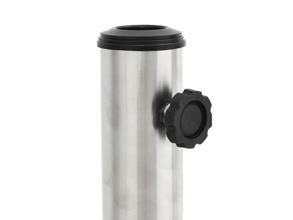 - Jednoduchá inštalácia: Tento stojan na slnečník má uťahovací gombík na pevnejšie upevnenie slnečníka k podstavcu.