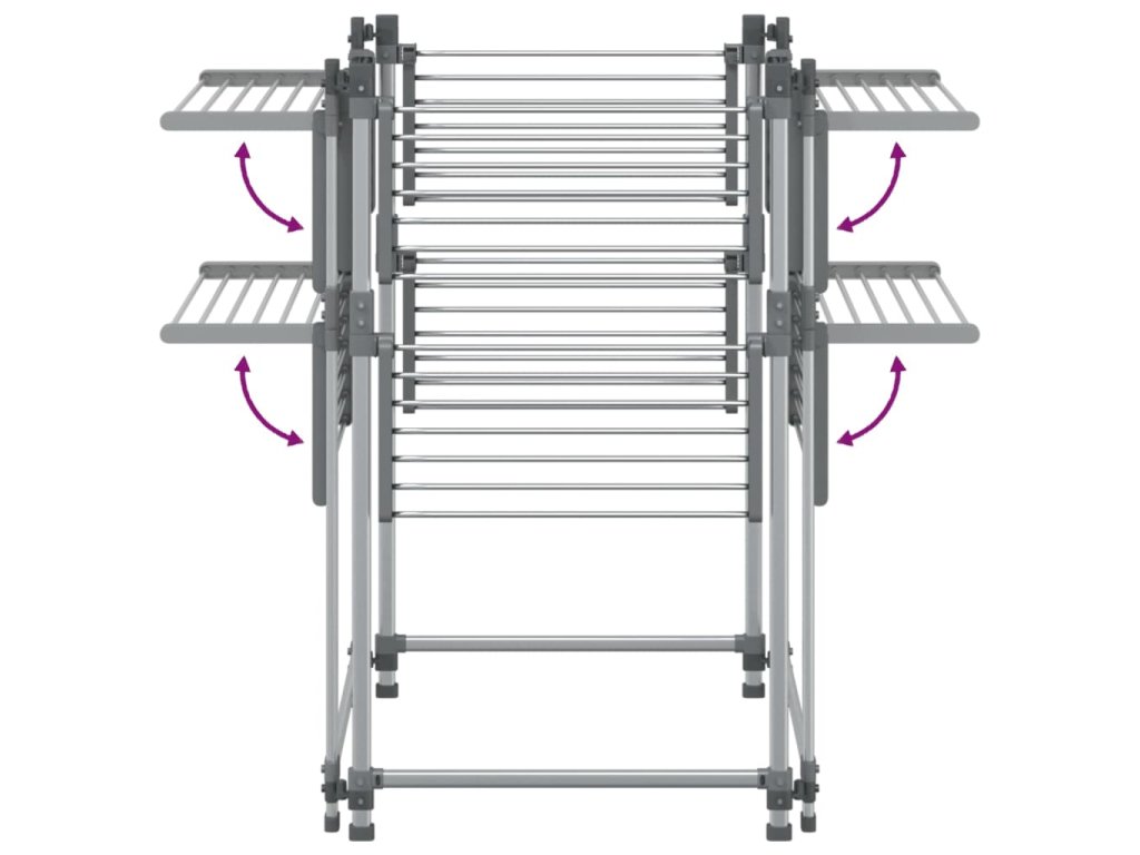 - Stabilný rám: Hliníkový kov je ľahký a pevný. Je odolný voči korózii so samoochrannou vrstvou oxidu. Hliníkový rám sušiča na bielizeň zaisťuje pevnosť a stabilitu.