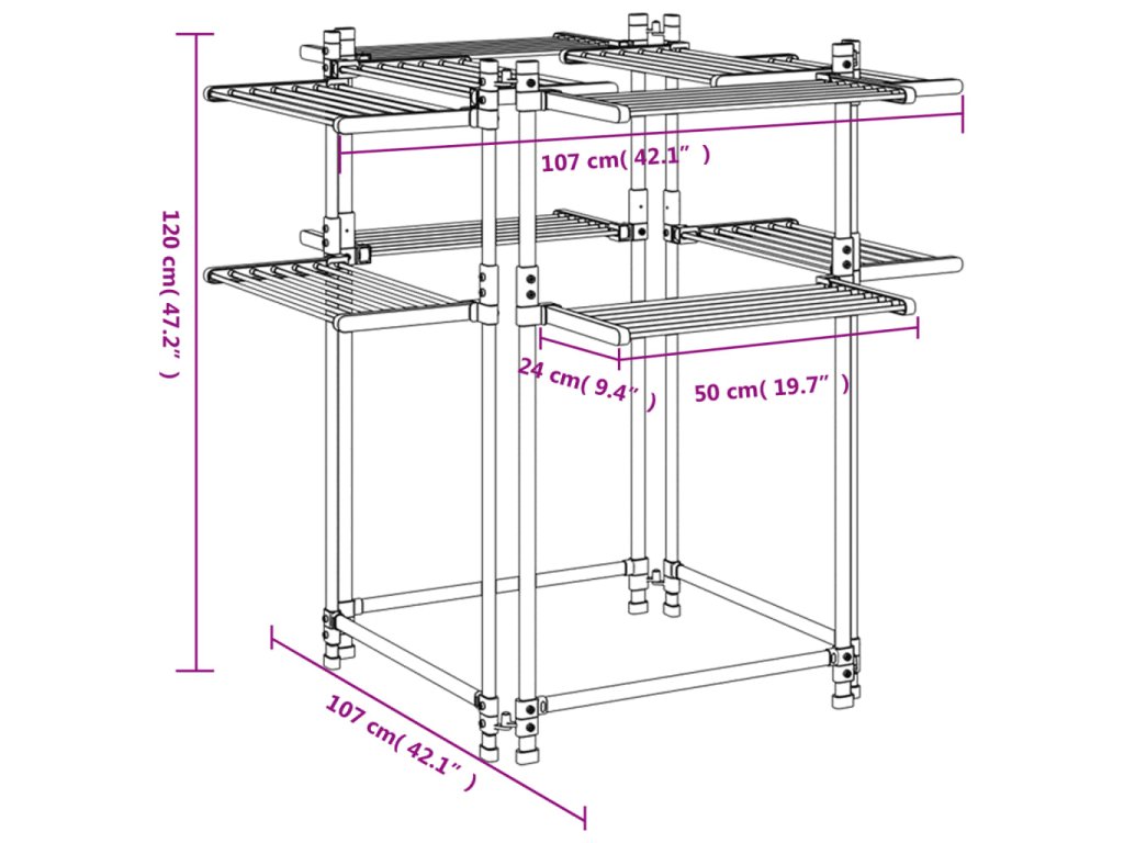Multidom Stojan na sušenie bielizne 107x107x120 cm hliník