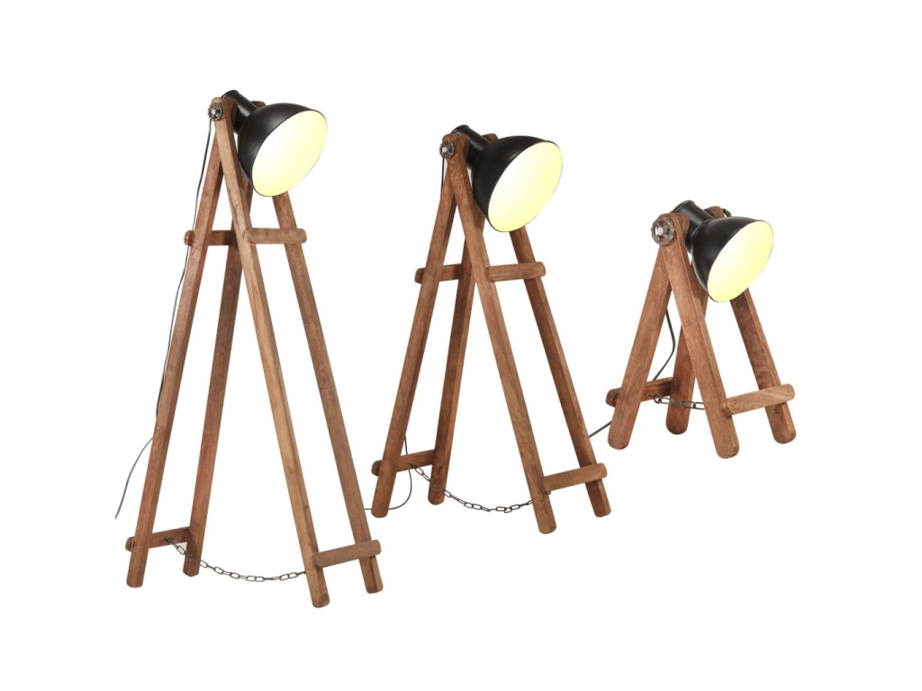 Multidom Stojanové lampy 3 ks čierne E27 masívne mangovníkové drevo