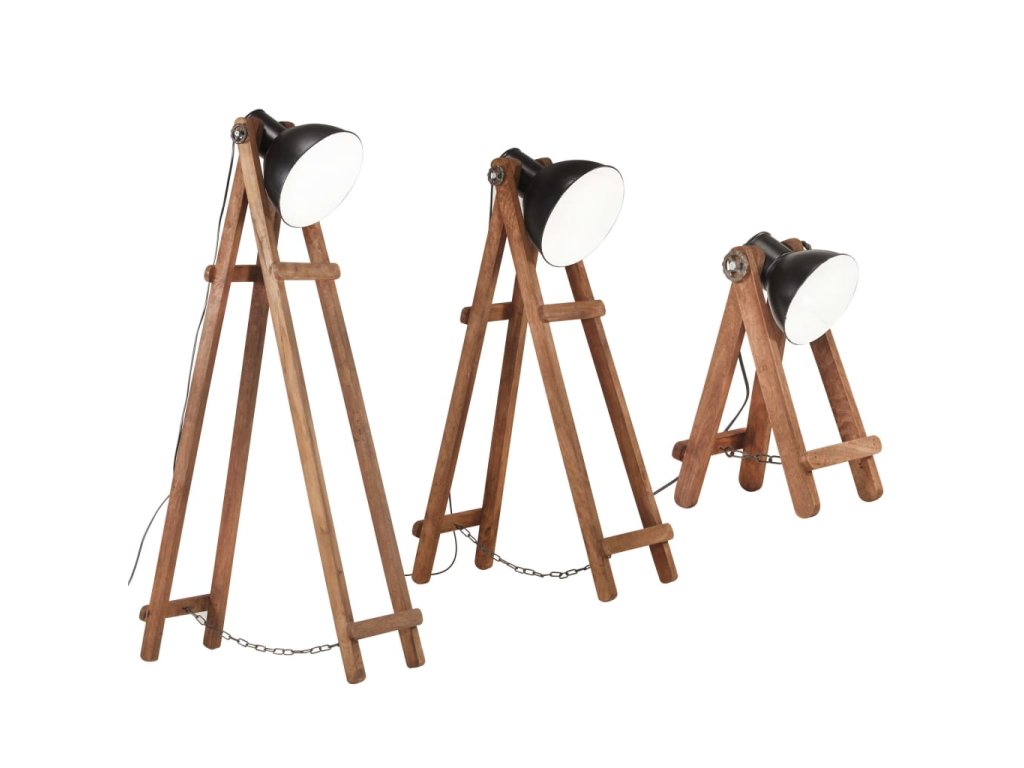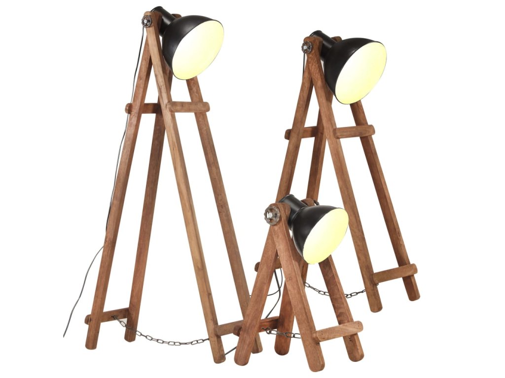 Tieto lampy sa vyznačujú starodávnym dizajnom a budú trendovým a pútavým prvkom v každom interiéri. Železné tienidlo s čiernou povrchovou úpravou vydáva teplé a príjemné svetlo. Rám z masívneho mangovníkového dreva s hnedou zvetranou povrchovou úpravou sa perfektne hodí do vidieckeho a priemyselného interiéru. Táto sada lámp má 3 rôzne veľkosti, aby splnila vaše špecifické potreby. Tienidlo má objímku E27 pre žiarovku s maximálnym výkonom 25 W. Môžete si vybrať a nainštalovať žiarovku E27 s rôznymi farbami svetla, ktoré vytvárajú atmosféru relaxácie a pokoja. Pre jednoduché zapnutie a vypnutie slúži podlahový spínač.