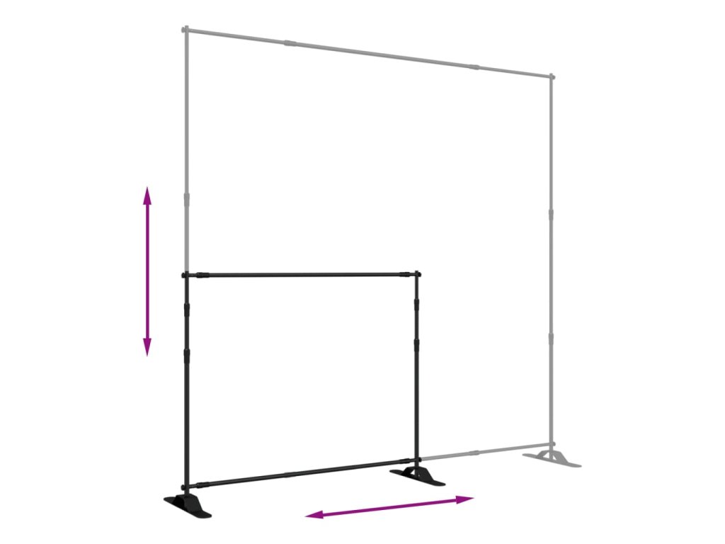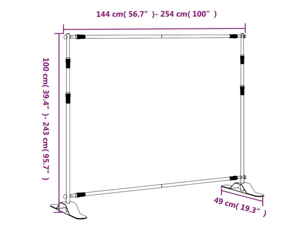 - Nastaviteľný dizajn: Stojan na pozadie sa dá prispôsobiť rôznym veľkostiam pozadia. Má rozsah šírky 144 cm až 254 cm a rozsah výšky 100 cm až 243 cm.