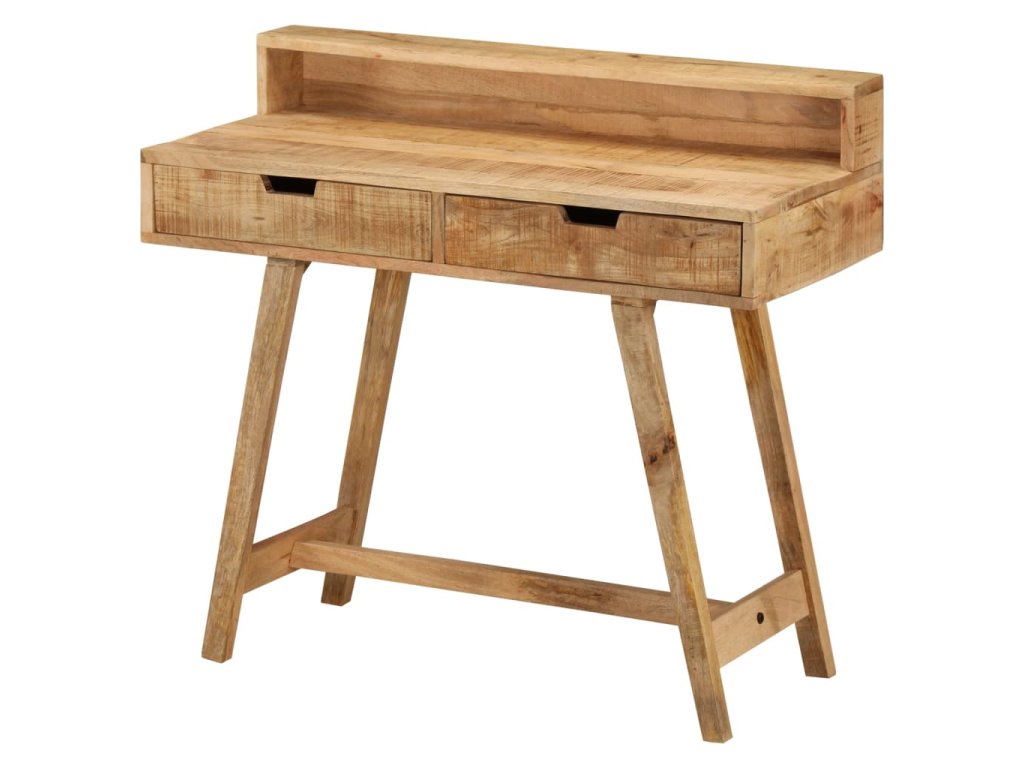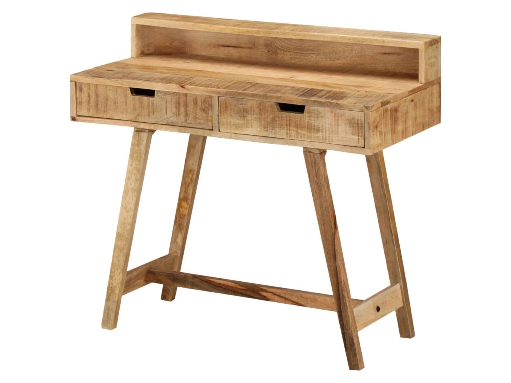 Tento stôl je vyrobený z masívneho surového mangového dreva a vyžaruje originálny vzhľad. Vďaka vynikajúcemu remeselnému spracovaniu a krásnej štruktúre mangového dreva je každý kus nábytku jedinečný a trochu odlišný od ostatných. Stolová doska poskytuje stabilnú a bezpečnú plochu, na ktorú si môžete položiť nápoje, košík s ovocím alebo vázu či iné dekoratívne predmety. Má dve zásuvky, ktoré poskytujú dostatok priestoru na odkladanie drobných predmetov, ako sú kľúče, zápisníky a iné drobnosti. Stôl možno použiť aj ako počítačový stôl, pracovný stôl, kancelársky stôl, stôl na čítanie, študijný stôl atď.