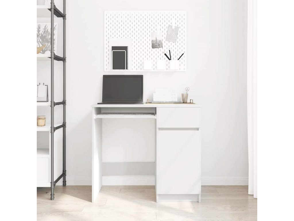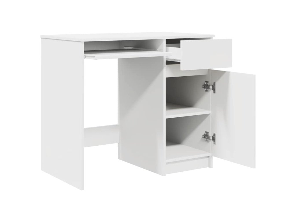 - Dostatok úložného priestoru: Kancelársky stôl má dvierka, vnútornú policu a zásuvku, čo zaisťuje, že vaše položky budú dobre usporiadané a upratané. Dvere skrinky poskytujú uzavretý úložný priestor, aby boli vaše veci chránené a mimo dohľadu, zatiaľ čo zásuvka ponúka ďalší priestor pre ľahký prístup k rôznym predmetom. Vnútorná polica pomáha triediť váš majetok, zlepšuje organizáciu a čistotu.