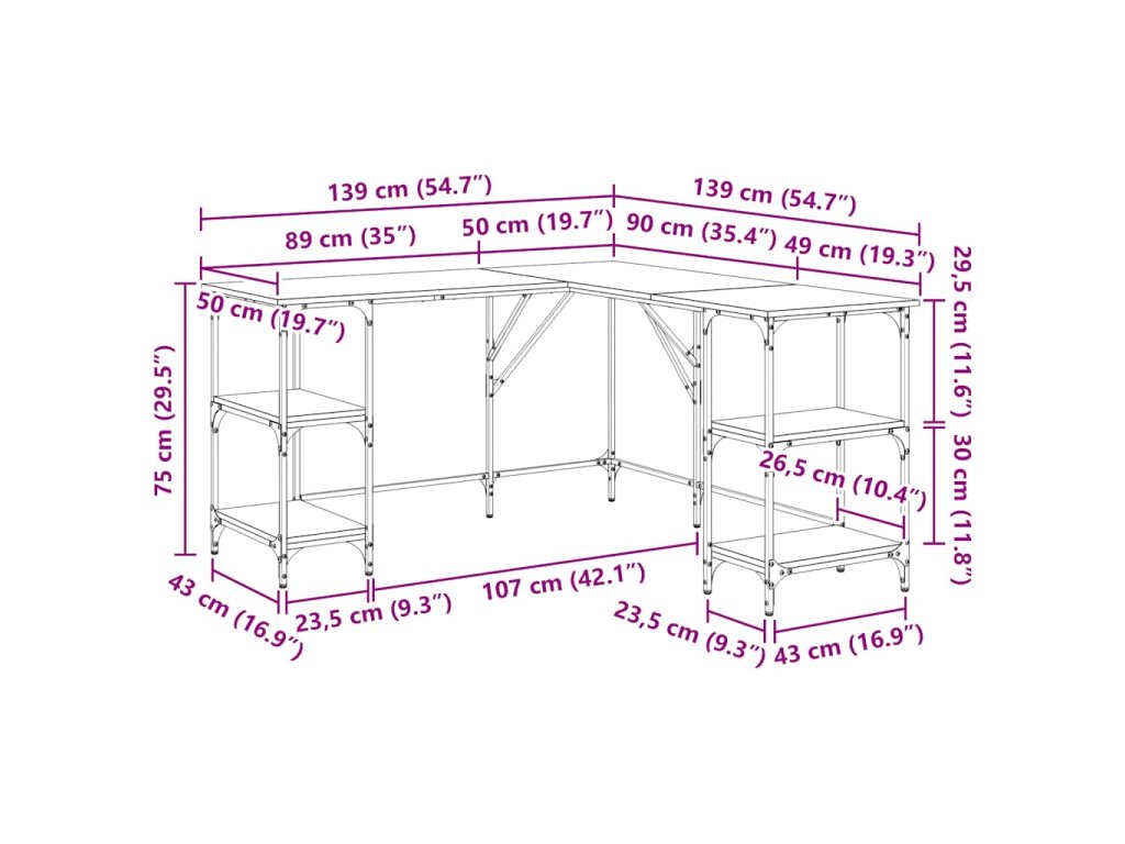 - Dizajn v tvare písmena L: Písací stôl má dizajn v tvare písmena L, vďaka čomu sa ľahko zmestí do akéhokoľvek rohu, aby sa maximalizoval váš obmedzený priestor.
