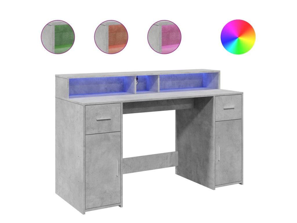 Multidom Stôl s LED svetlami betónovo sivý 140x55x91 cm kompozitné drevo
