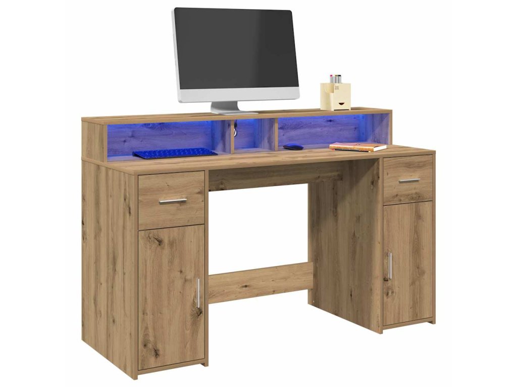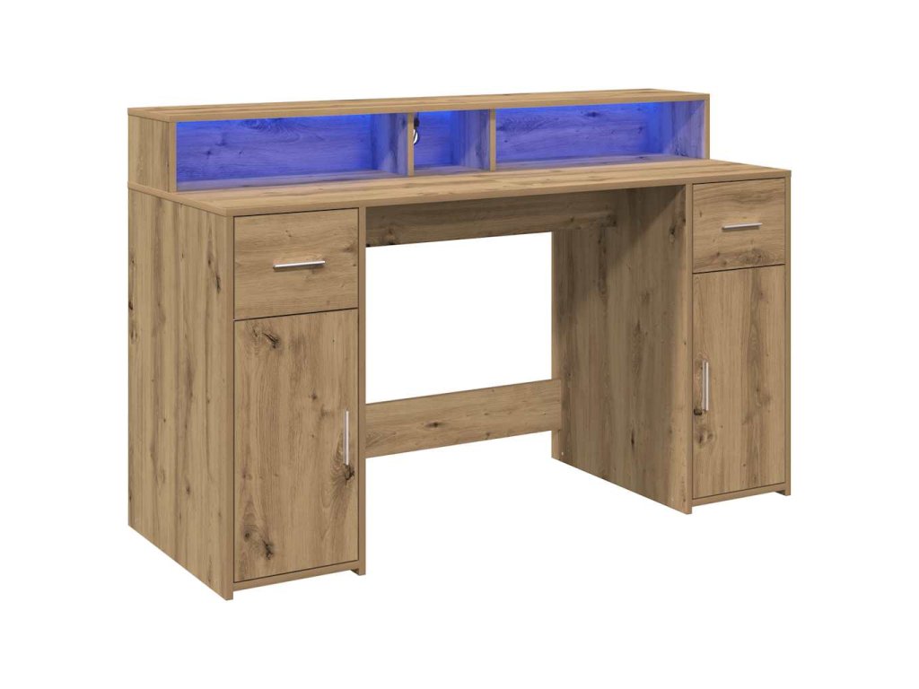 Multidom Stôl s LED svetlami dub artisan 140x55x91 cm kompozitné drevo