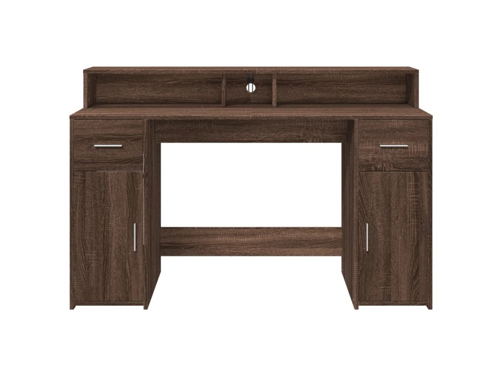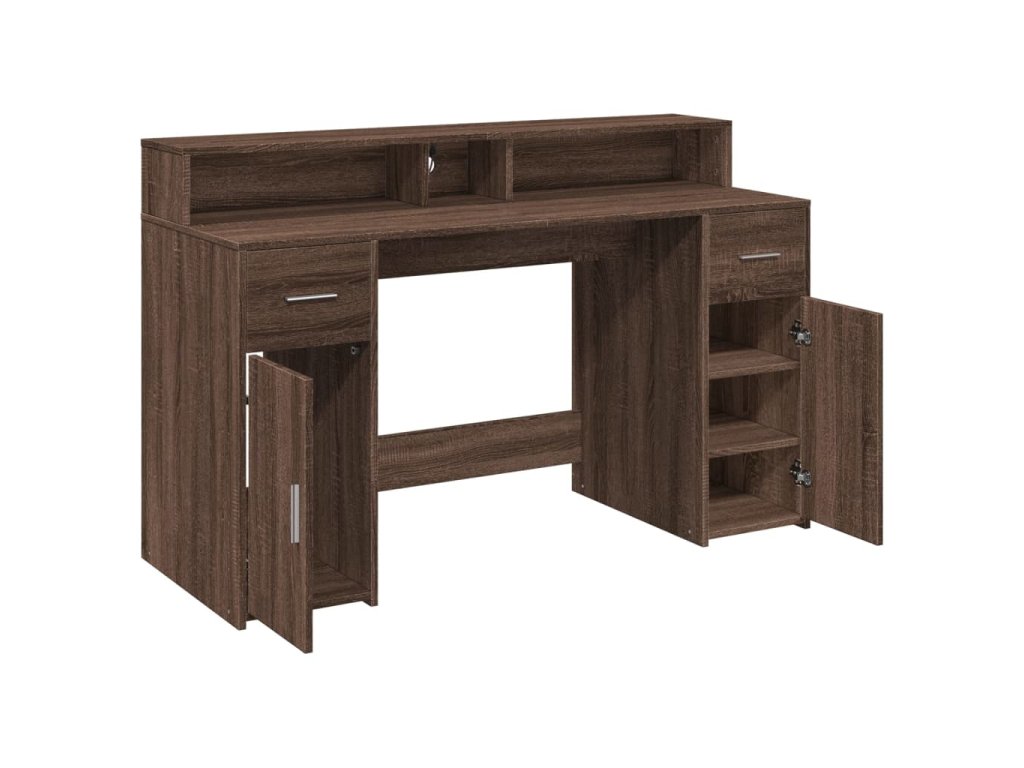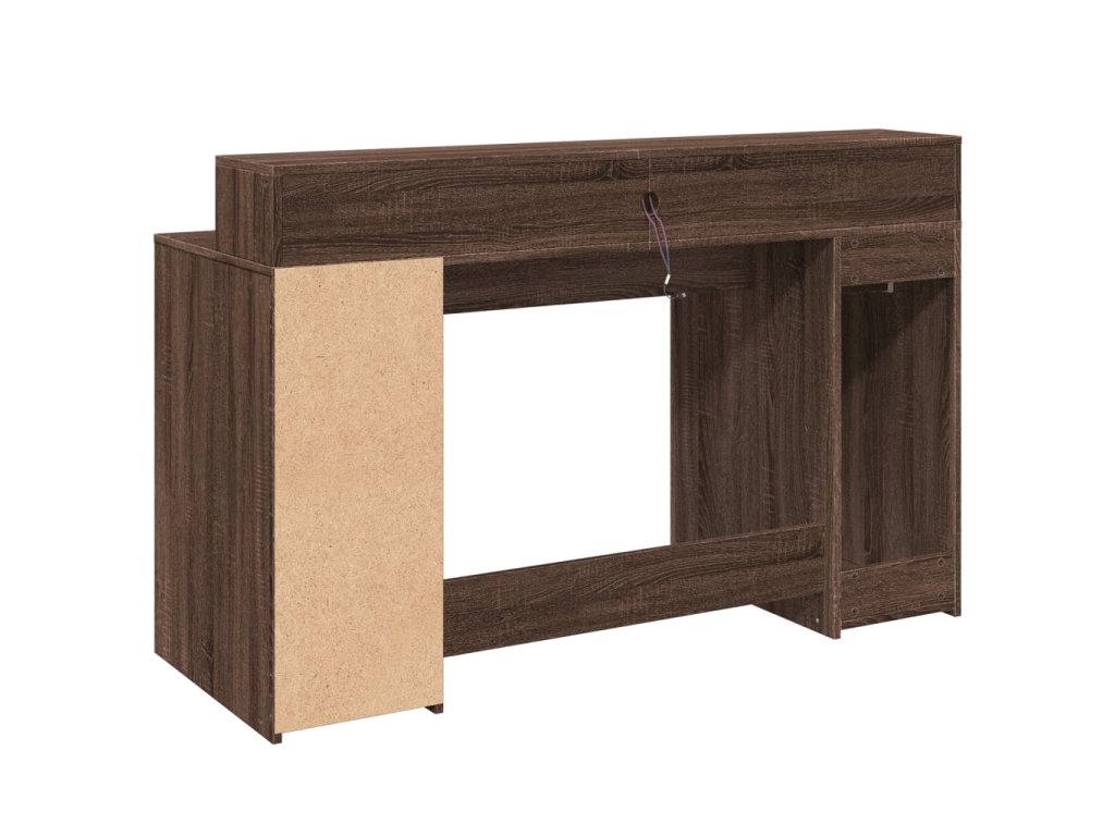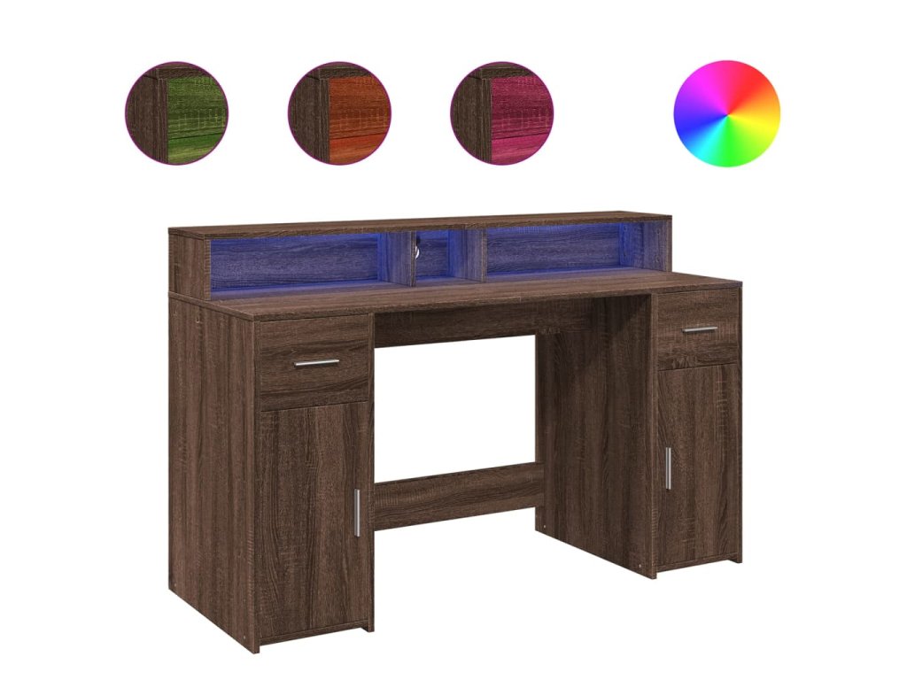 Multidom Stôl s LED svetlami hnedý dub 140x55x91 cm kompozitné drevo