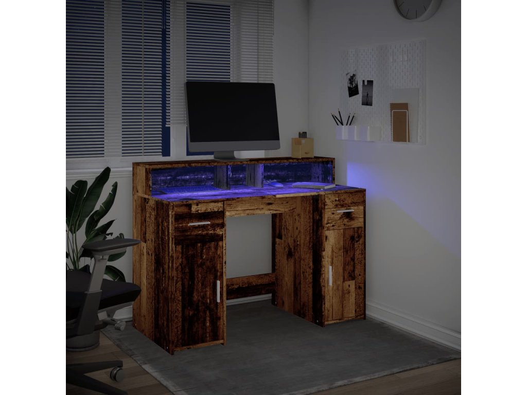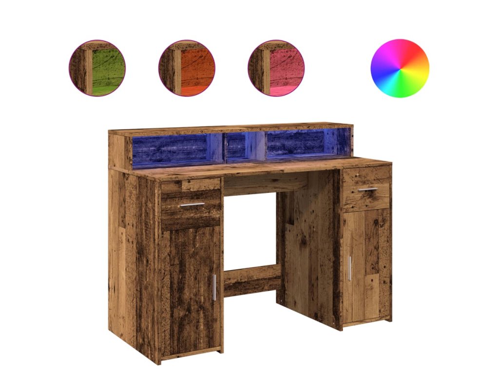 Multidom Stôl s LED svetlami staré drevo 120x55x91 cm kompozitné drevo