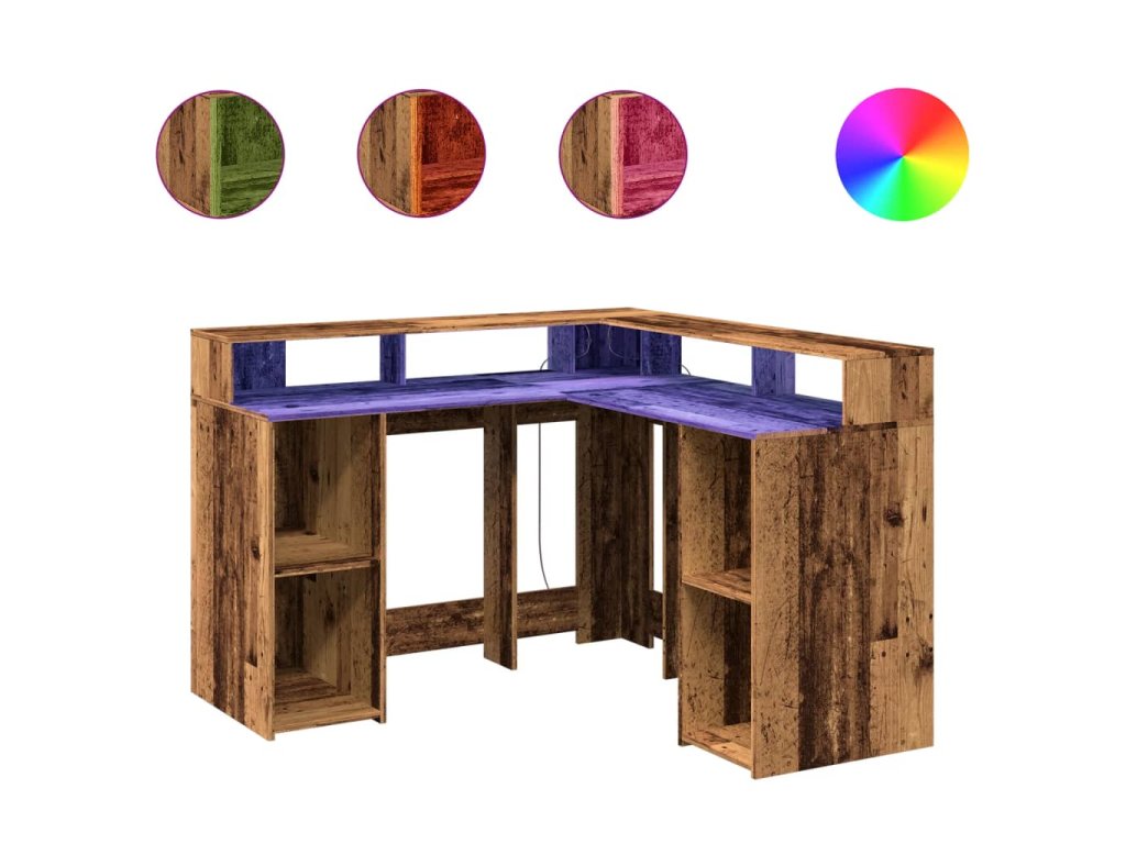 Multidom Stôl s LED svetlami staré drevo 130x130x91 cm kompozitné drevo
