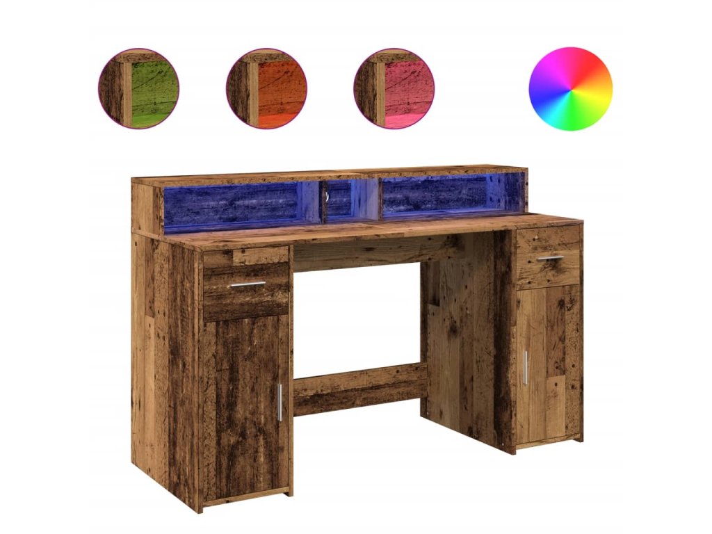 Multidom Stôl s LED svetlami staré drveo 140x55x91 cm kompozitné drevo