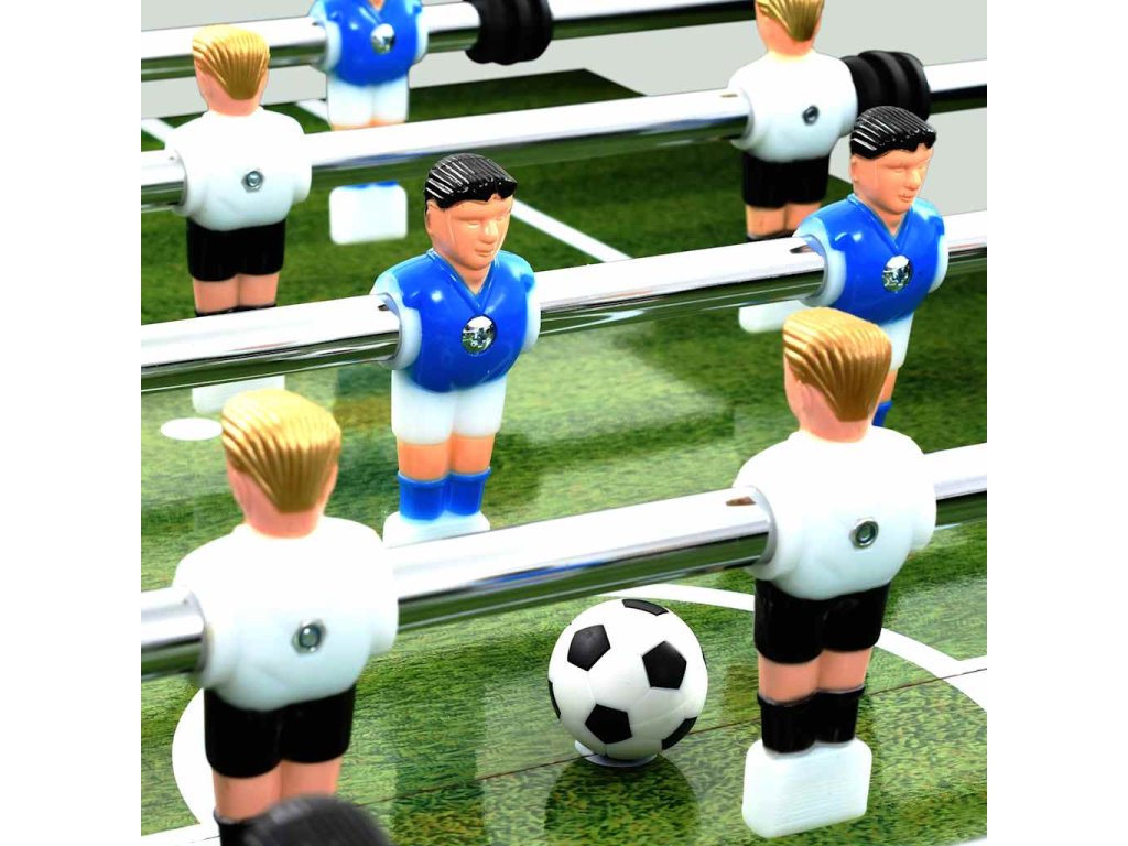 - Kompletná futbalová súprava: Tento futbalový stôl je plne vybavený všetkým, čo potrebujete: 2 góly, 2 futbalové lopty, 2 výsledkové tabuľky, 8 hráčske tyče a 22 hráčov, čo poskytuje skutočne autentický herný zážitok.