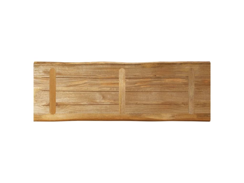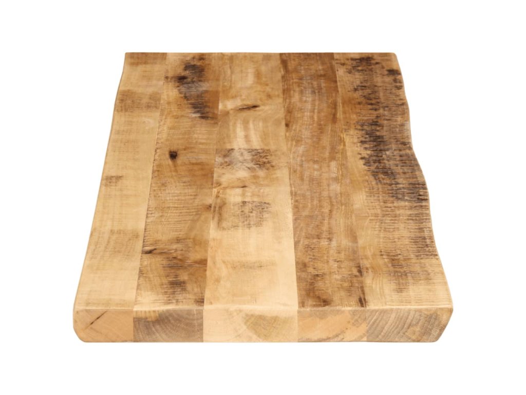 - Dizajn so živým okrajom: Doska z masívneho dreva má rustikálny živý okraj. Vďaka tomu, že hrče, praskliny, mierne zakrivené tvary a farebné odtiene sú súčasťou dreva, každý kus má svoj vlastný jedinečný charakter.