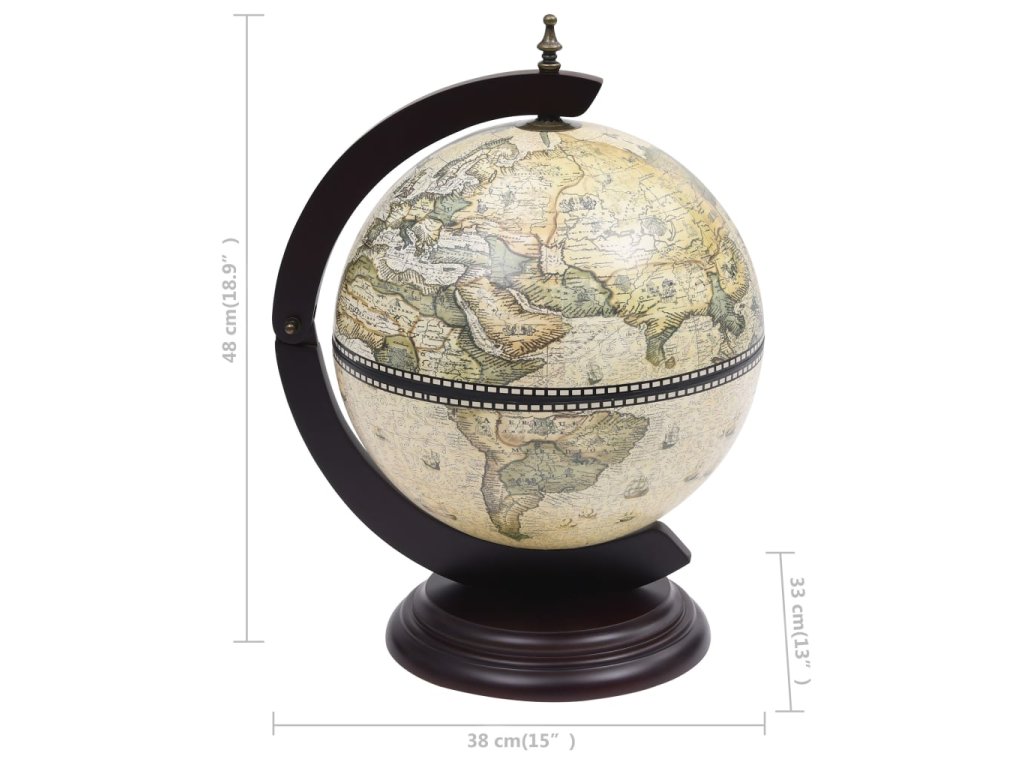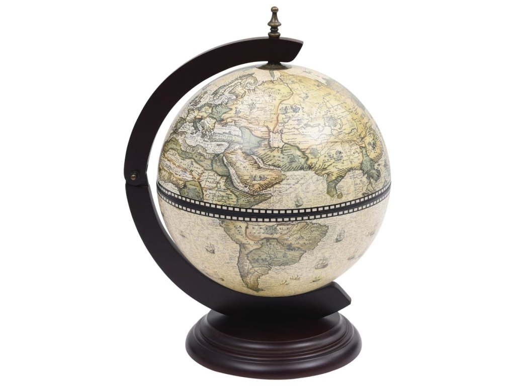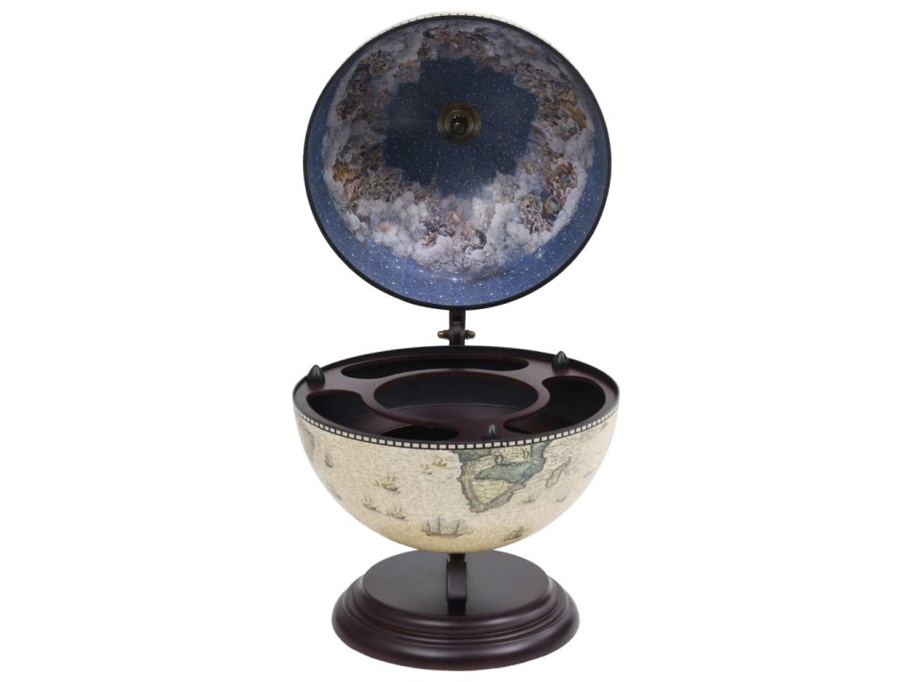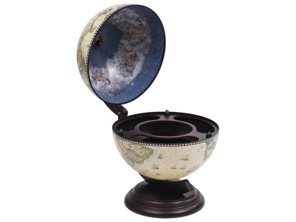 Vonkajší povrch glóbusu je obalený replikou námorníckej mapy zo 16. storočia a vnútro glóbusu zdobia repliky starobylých fresiek, a tak je tento glóbusový bar skutočným umeleckým kúskom a ozajstnou dekoráciou do domácnosti či kancelárie.