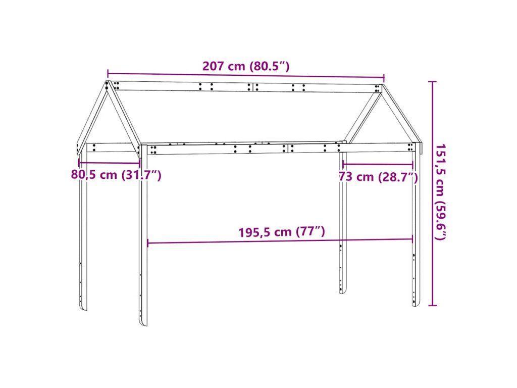 Multidom Strecha na detskú posteľ biela 207x80,5x151,5 cm borovic. masív