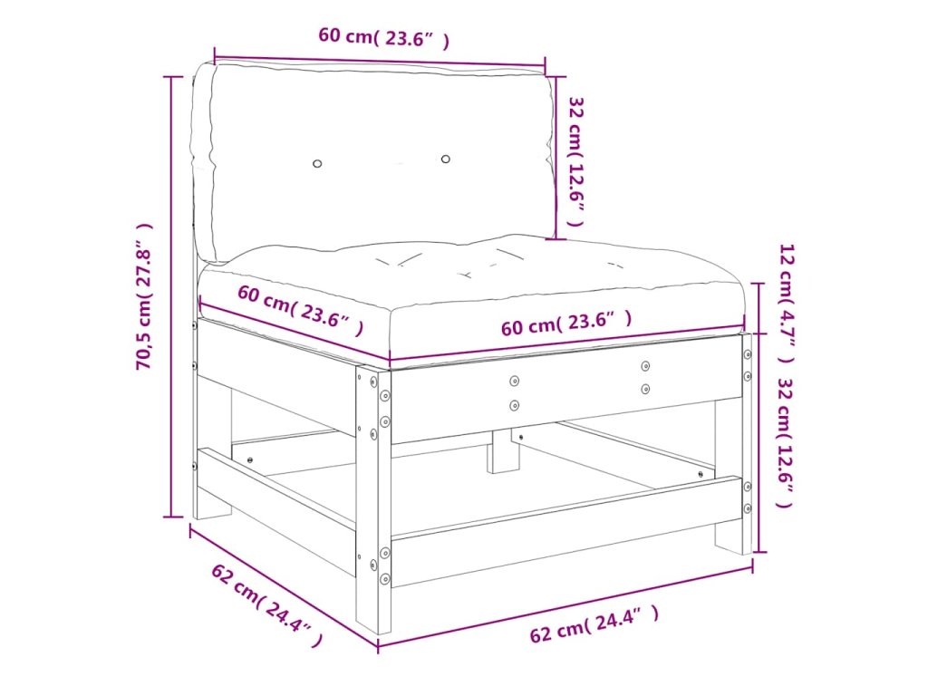 - Rozmery podložky na sedadlo: 60 x 60 x 12 cm (D x Š x V)
