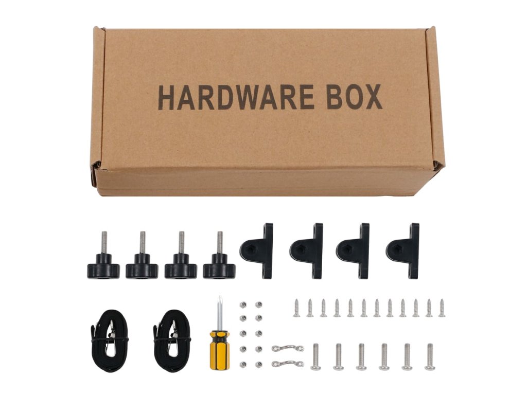 - Montážne súčiastky (háčiky s očkami, montážne matice a úchytky sú vyrobené z nehrdzavejúcej ocele 316 vhodnej na používanie v námorníctve a ostatné súčiastky sú vyrobené z nehrdzavejúcej ocele 304)