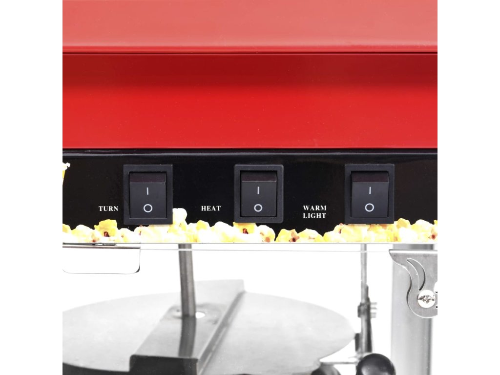 Vďaka nášmu výrobníku pukancov si za pár minút pripravíte lahodný popcorn! Je to veľmi pútavý prvok a je špeciálne navrhnutý pre profesionálny catering alebo domáce potreby! Je ľahko ovládateľný s dizajnom s 3 vypínačmi, vďaka čomu je pukanie kukurice rýchle a jednoduché.