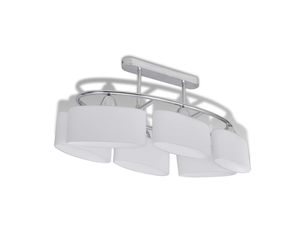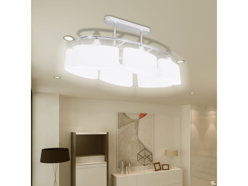 Táto jedinečná stropná lampa so šiestimi sklenenými tienidlami predstavuje moderný dizajn. Chrómová povrchová úprava dodáva tomuto svietidlu moderný štýl – ideálna do obývačky alebo spálne v akomkoľvek štýle.