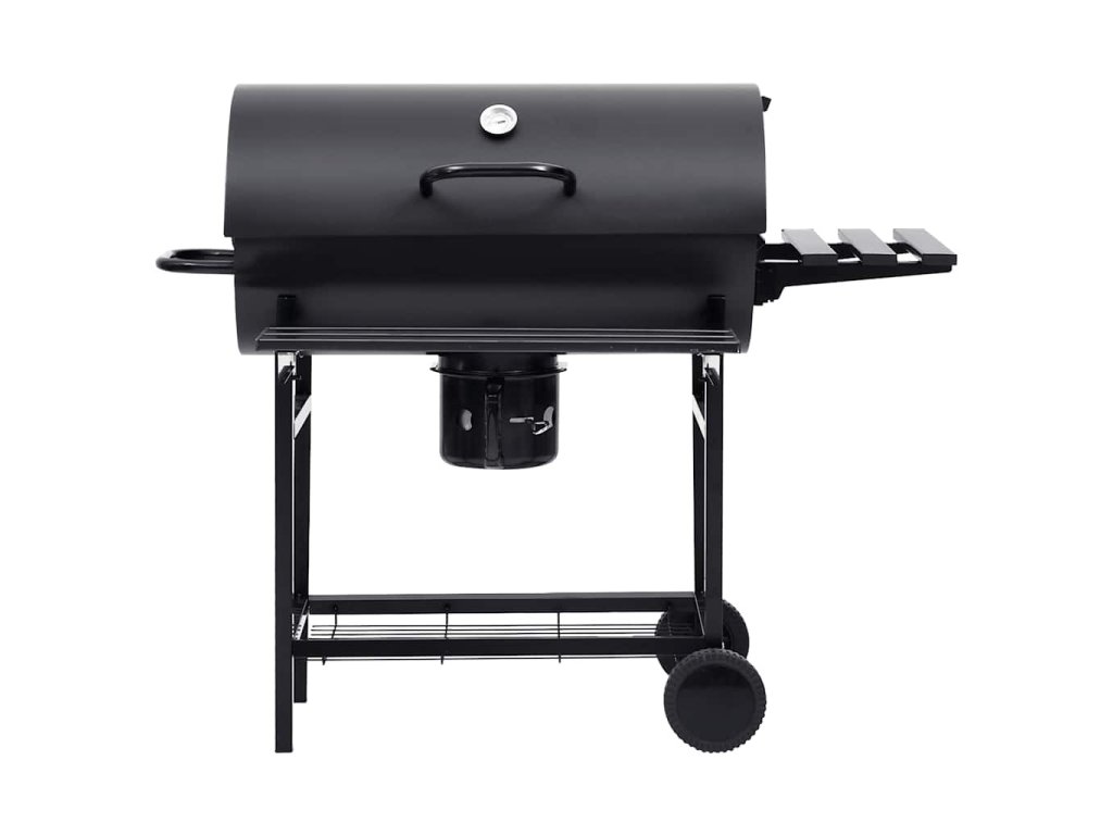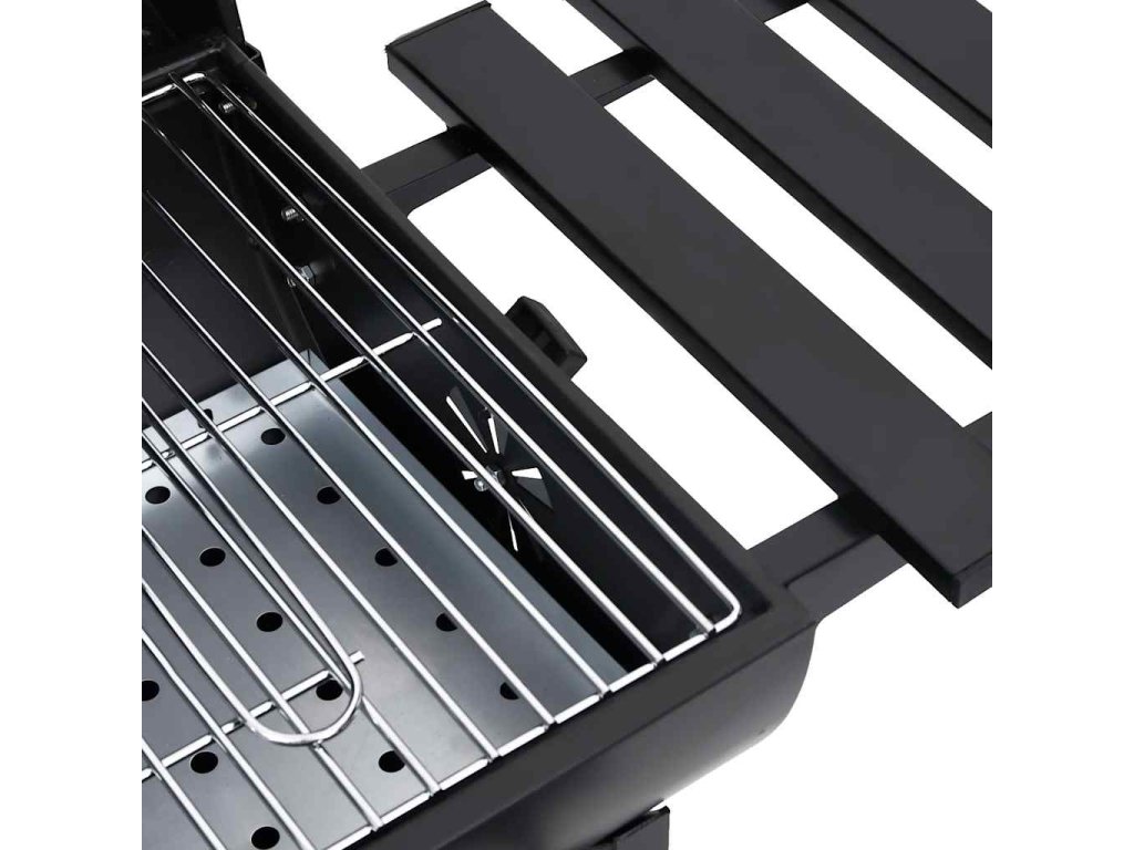 Tento sudový gril je vyrobený z odolnej ocele, je pevný a odolný. Jeho výklopné veko s praktickou rukoväťou umožňuje regulovať teplotu pečenia a udržiava termostat. Ohrievacia mriežka je vhodná na udržiavanie pripraveného jedla horúceho a umožňuje servírovať jedlo naraz. Tento gril na drevené uhlie je vybavený aj sklopnou bočnou poličkou a prednou doskou na uskladnenie. Vďaka kolieskam môžete gril ľahko premiestňovať. Na jednoduché čistenie slúži aj odnímateľný popolník.