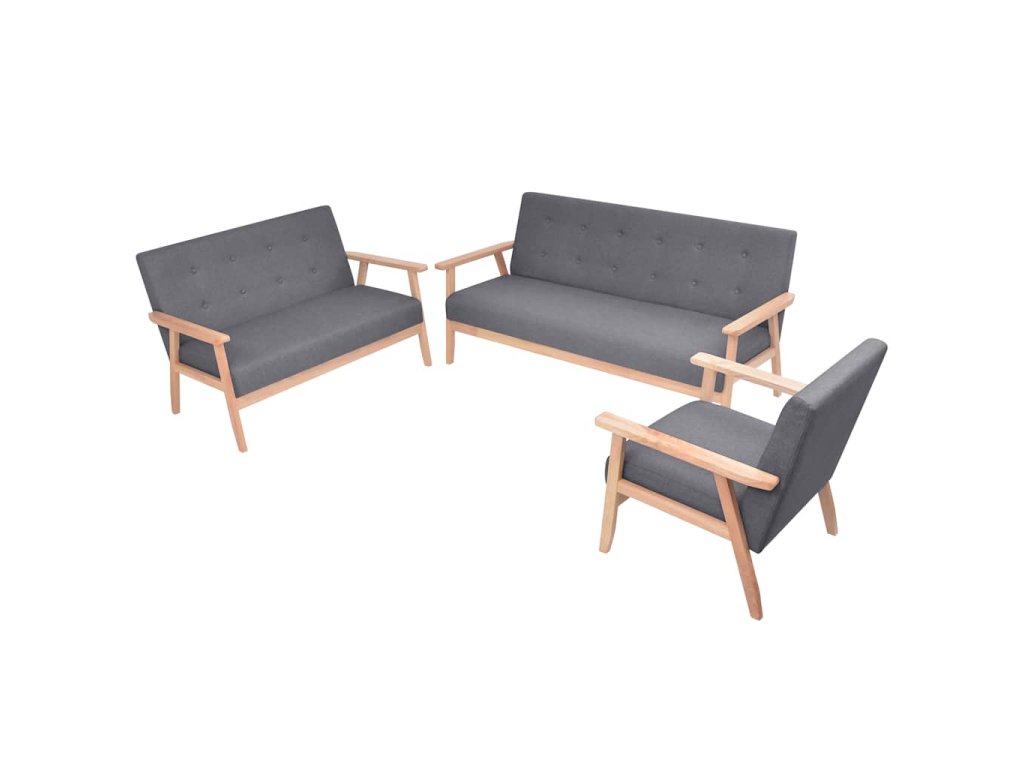 Multidom Súprava 3 látkových pohoviek, tmavosivá