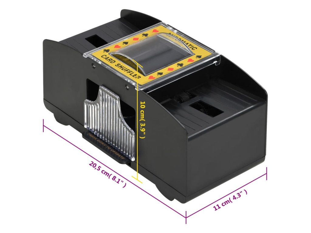 - Rozmery automatického miešača kariet: 20,5 x 11 x 10 cm (D x Š x V)