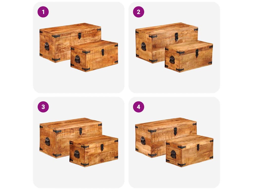 Táto súprava 2 skladovacích truhlíc zo surového mangového dreva predstavuje nadčasový doplnok do vašej domácnosti, ktorý poskytuje množstvo úložného priestoru, vďaka čomu budete mať vo svojich veciach vždy poriadok.
