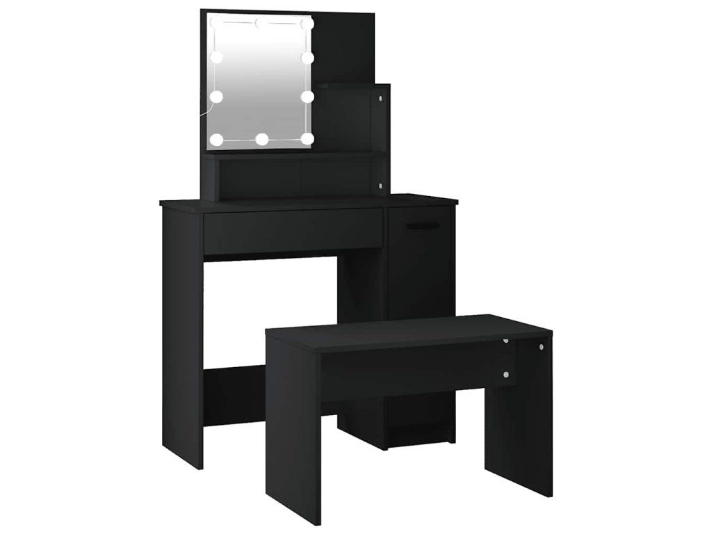 Multidom Súprava toaletného stolíka s LED čierna spracované drevo