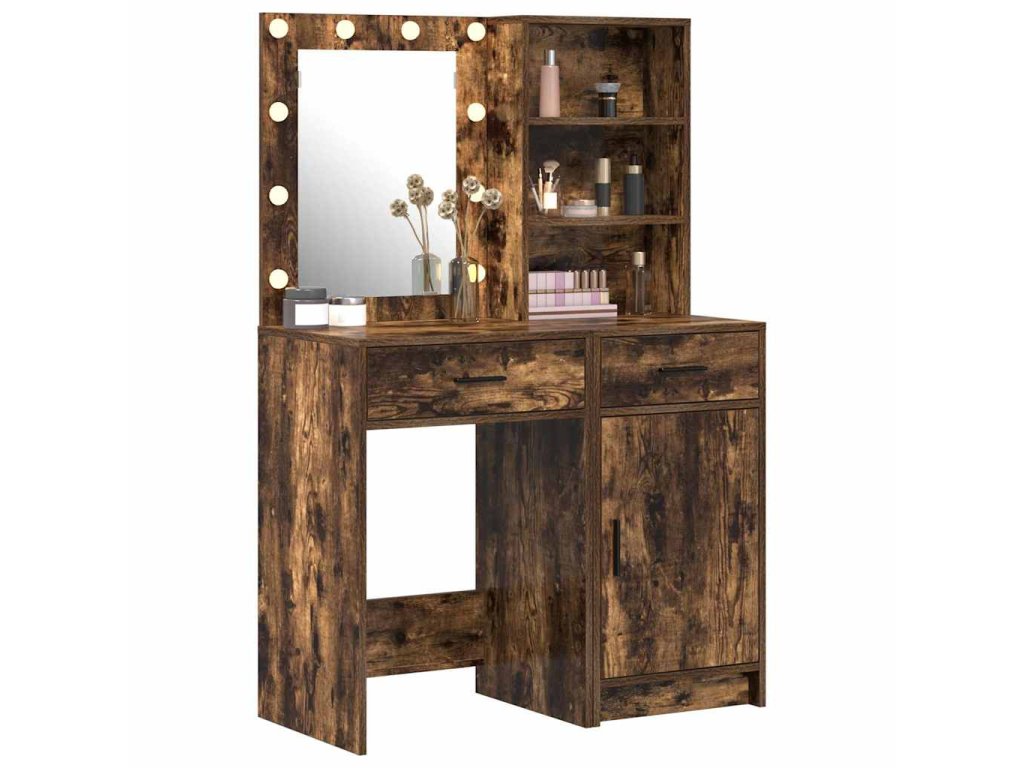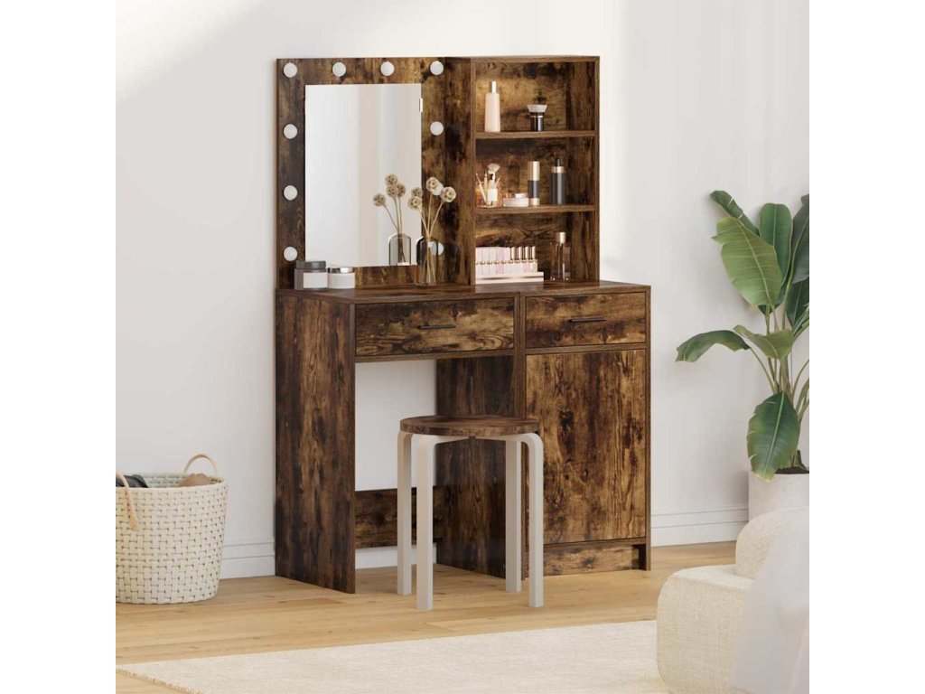Multidom Súprava toaletného stolíka s LED so zásuvkou 2 pcs Dymová dub