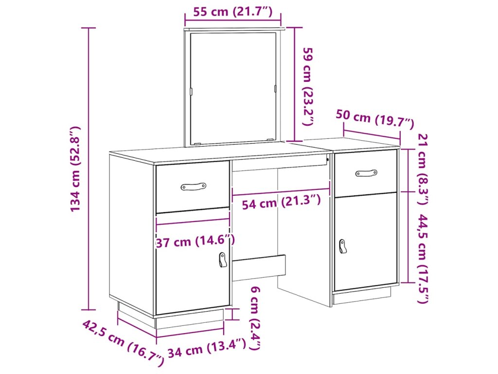 - Rozmery toaletného stolíka: 95 x 50 x 134 cm (Š x H x V)