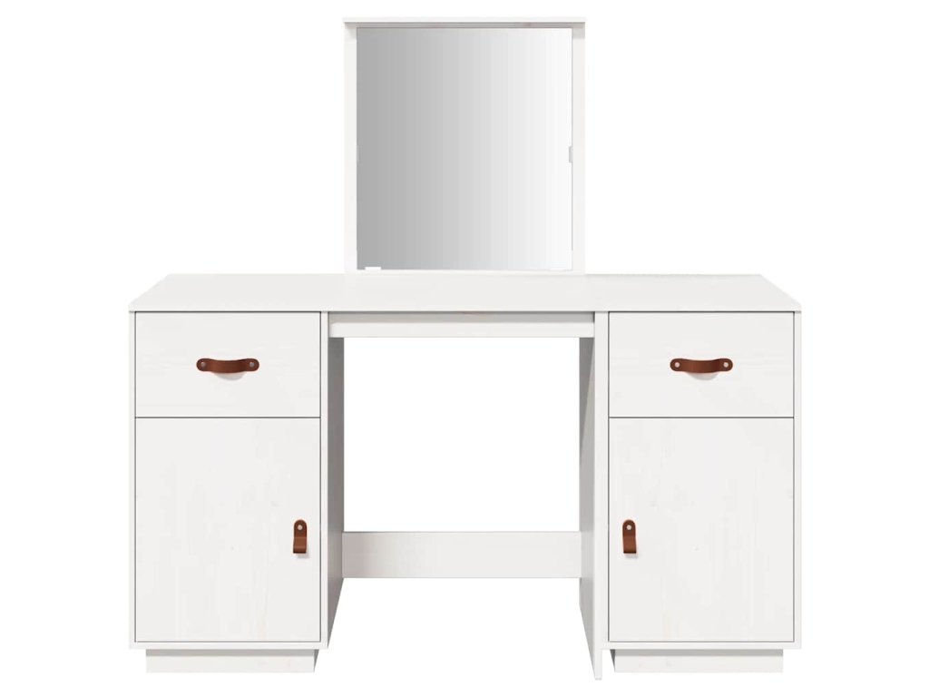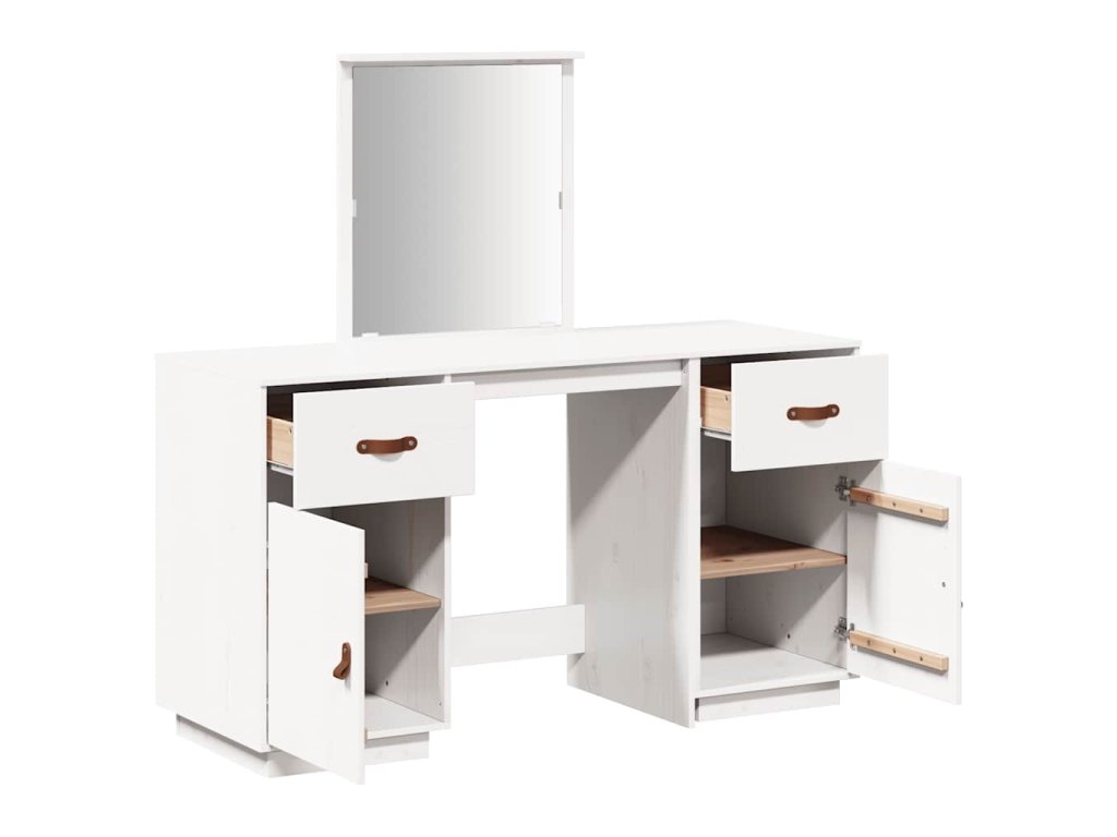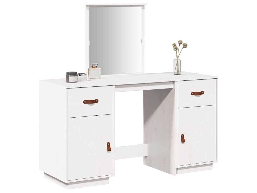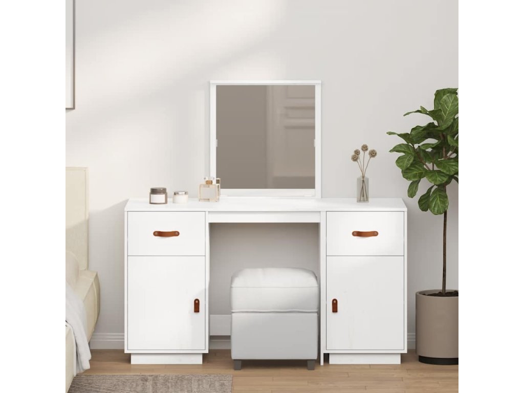 Multidom Súprava toaletného stolíka so zrkadlom biela masívna borovica