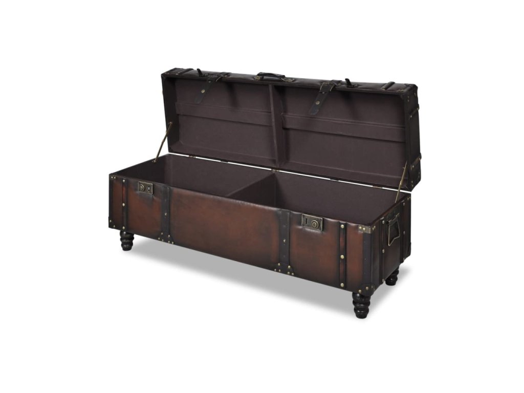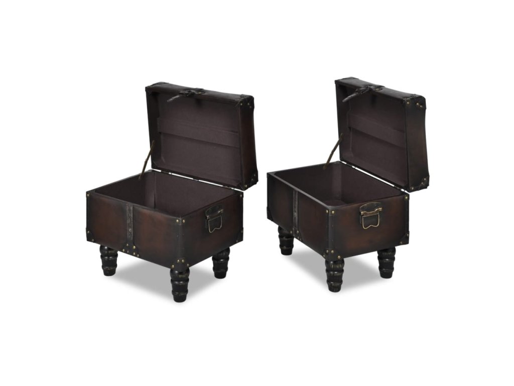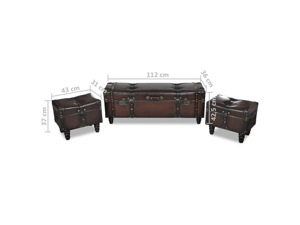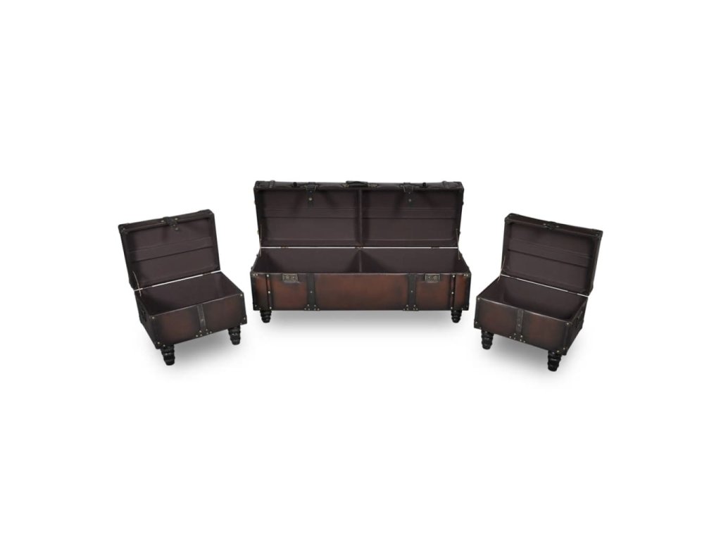Táto súprava úložných lavíc pozostáva z dlhej úložnej lavice a 2 taburetiek. Má elegantný štýl v sýtej tmavohnedej farbe a predstavuje ideálny doplnok do interiéru.