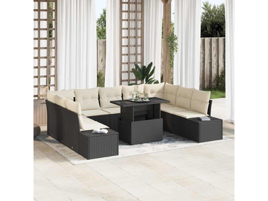 Multidom Súprava záhradných pohoviek 10 pcs Čierna Poly ratan