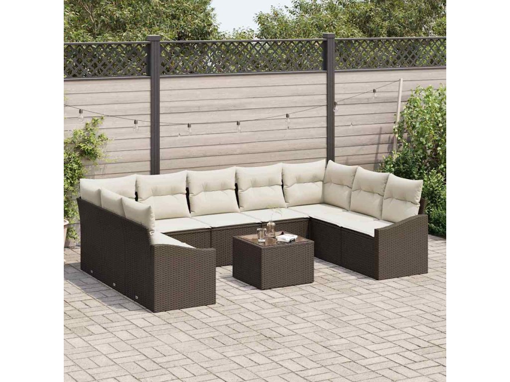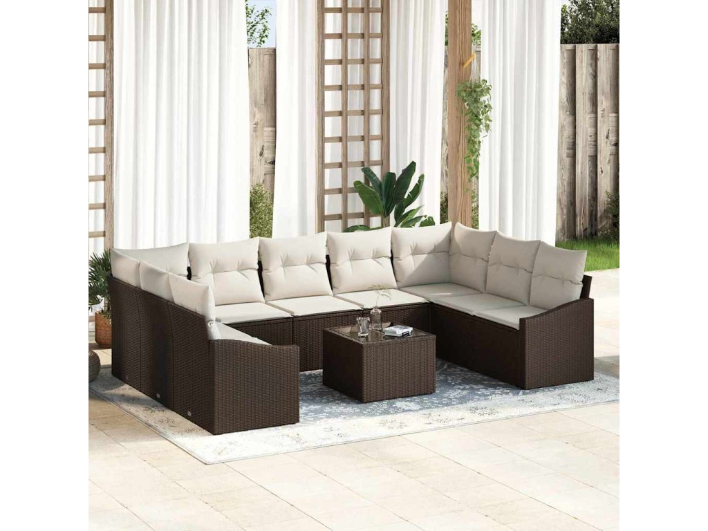 Multidom Súprava záhradných pohoviek 10 pcs Hnedá Poly ratan