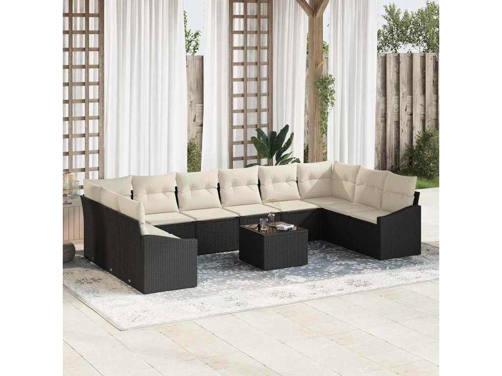 Multidom Súprava záhradných pohoviek 11 pcs Hnedá a smotanová polyratan