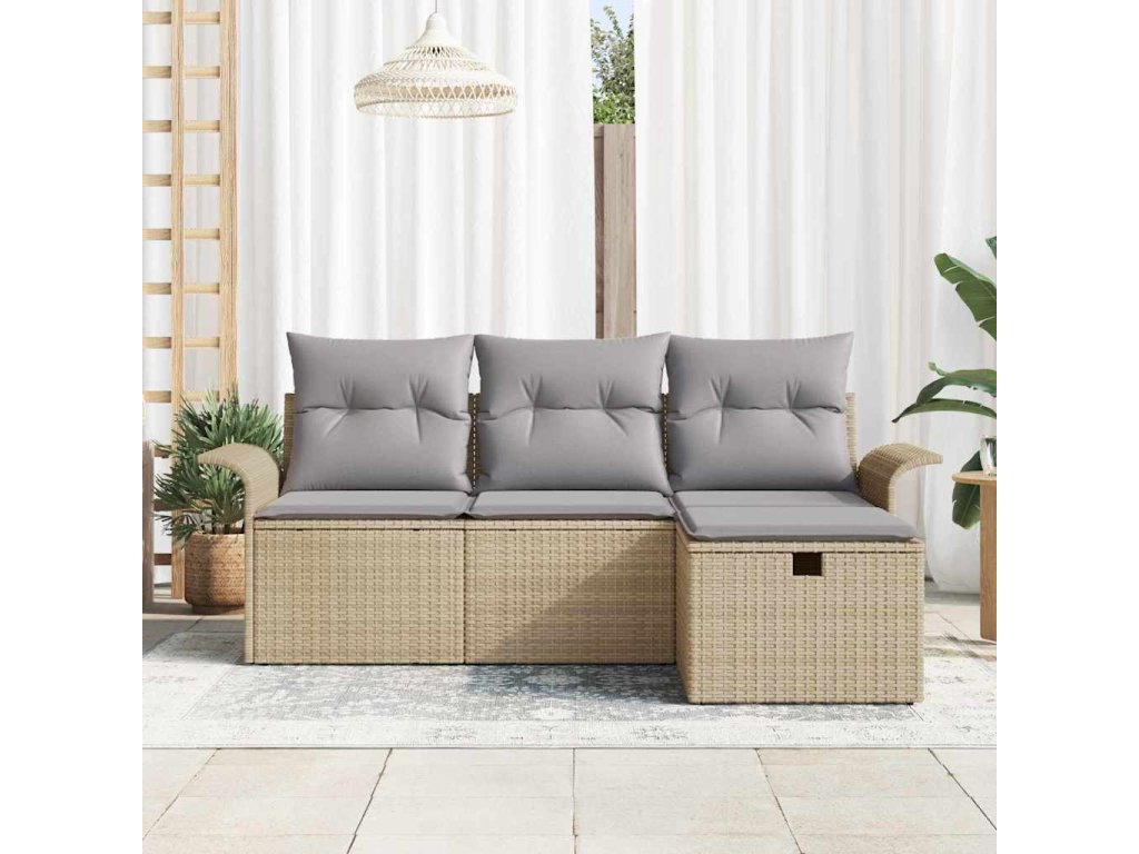 Multidom Súprava záhradných pohoviek 4 pcs Beige a svetlo šedá polyratan