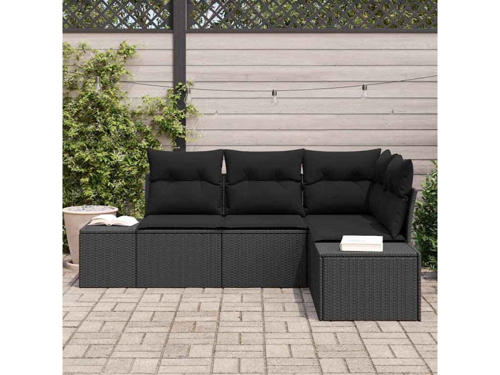 Multidom Súprava záhradných pohoviek 4 pcs Čierna polyratan