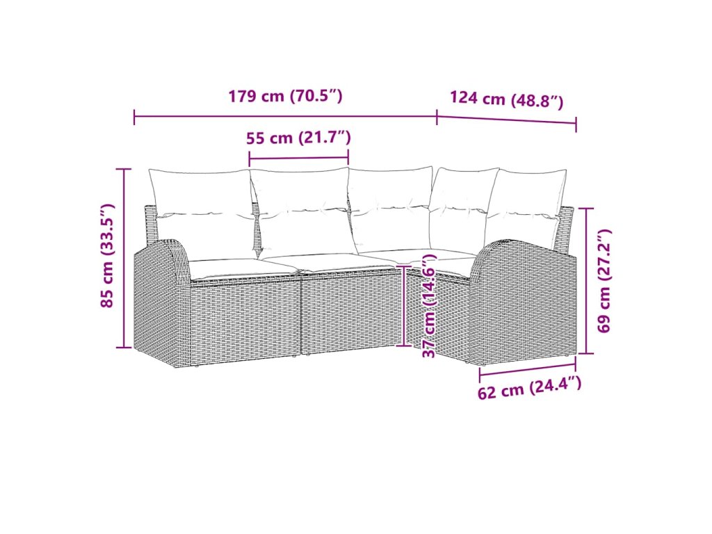 Tento záhradný pohovkový set je vrcholom vonkajšieho oddychu s jeho elegantným obdĺžnikovým tvarom a moderným štýlom. Je super pre záhrady a terasy, ponúka pohodlie a štýl, a je ideálny na letné posedenia. Jeho čisté línie a funkčná povaha sa páčia súčasným štýlom, umožňujú vám užiť si pekný vzhľad aj praktickosť vo vašej vonkajšej obývačke.