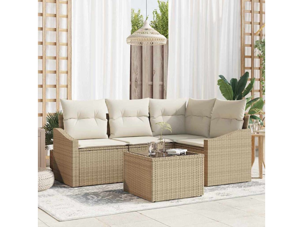 Multidom Súprava záhradných pohoviek 5 pcs Béžová a krémová polyratan