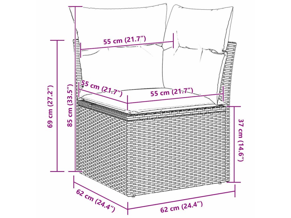 - Materiály: Vyrobené len z kvalitného poly ratanu s polyesterovými vankúšmi. Poly ratan je odolný voči počasiu, najmä UV žiareniu, takže nábytok zostáva pekný aj vonku bez vyblednutia. Tkanina je pohodlná a trvácna, a polyesterové vankúše zvyšujú komfort.