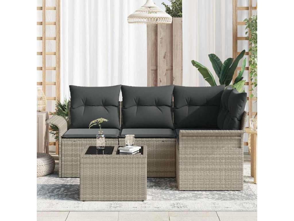 Multidom Súprava záhradných pohoviek 5 pcs Svetlosivá polyratan