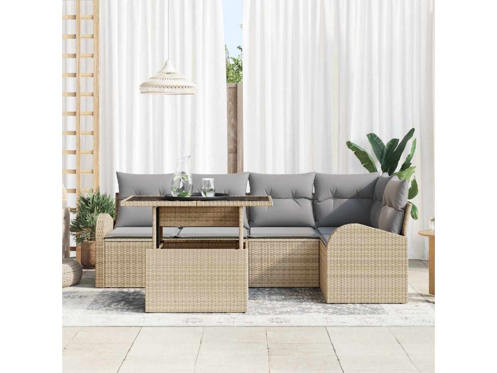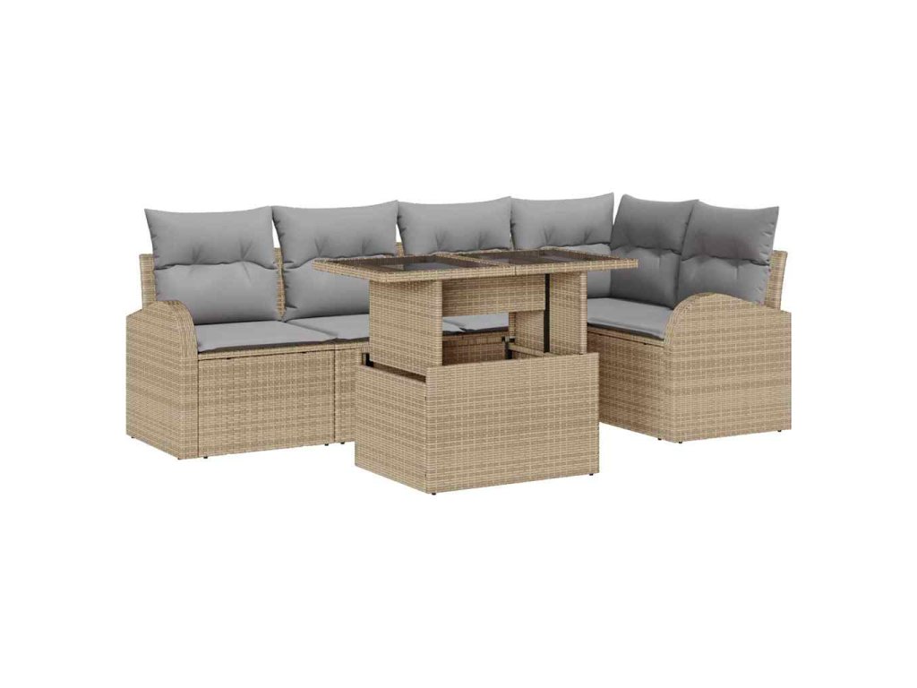 Multidom Súprava záhradných pohoviek 6 pcs Beige a svetlo šedá polyratan