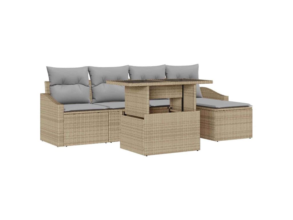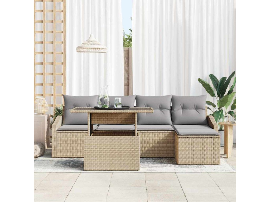 Multidom Súprava záhradných pohoviek 6 pcs Beige a svetlo šedá polyratan